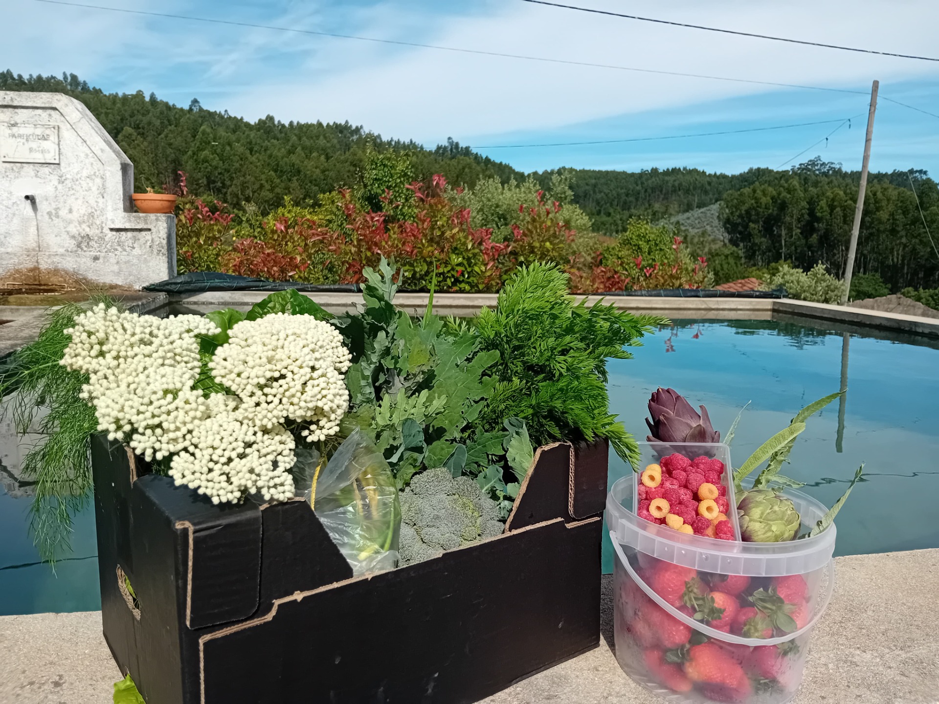 Seguindo os princípios da Permacultura, utilizando métodos de cultivo no-dig e sem agrotóxicos, produzimos vegetais distribuídos no formato de cabazes semanais. Também produzimos plantas vivas medicinais para venda, na nossa Quinta e em mercados semanais. Tudo o que é cultivado por nós é transformado com amor em todos os processos, para criar condimentos, infusões, tinturas e óleos macerados, chegando até si com a melhor qualidade possível.